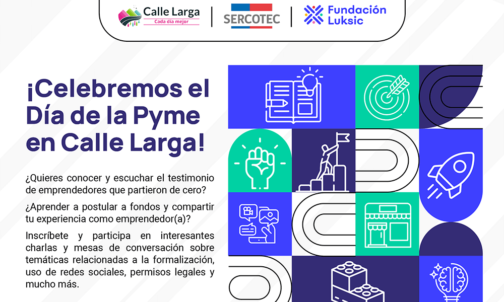 Con el objetivo de celebrar a las y los emprendedores, Fundación Luksic, la Municipalidad de Calle Larga y el Centro de Negocios SERCOTEC Aconcagua los invitan a participar en este evento que ofrecerá interesantes charlas y mesas de aprendizaje sobre temáticas de utilidad en emprendimiento.